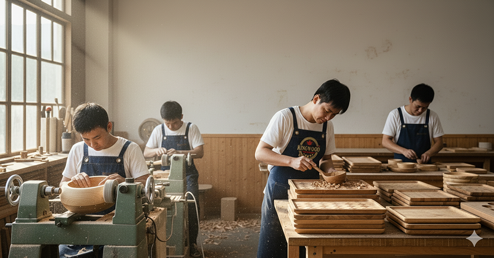 Danh mục sản phẩm gồm thớt, đũa, vá sạn, muỗng, khay, tô… được chế tác từ gỗ xà cừ, gỗ cao su rừng trồng, xử lý sấy khô đạt chuẩn, hạn chế cong vênh – nấm mốc, đạt tiêu chuẩn vệ sinh an toàn thực phẩm. Kingwood cam kết không dùng hóa chất độc hại, đảm bảo an toàn cho sức khỏe và thân thiện môi trường.