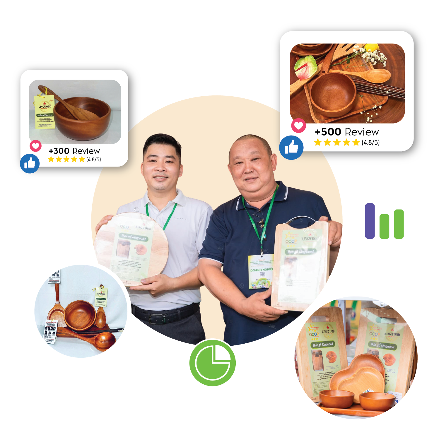 Chúng tôi đồng thời tạo việc làm ổn định cho lao động địa phương, góp phần giữ gìn nghề mộc truyền thống. Năm 2024, sản phẩm Kingwood đạt chứng nhận OCOP 3 sao, và đã xuất khẩu sang Mỹ, Malaysia, Đài Loan, Trung Quốc.