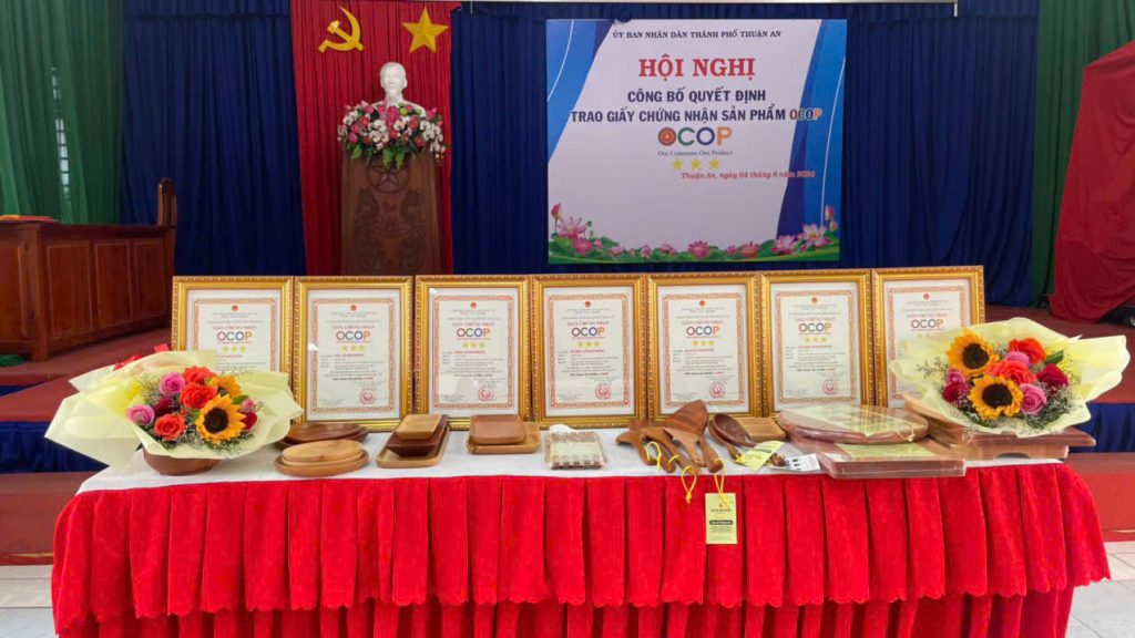 Trong hành trình hơn 20 năm xây dựng và phát triển, thương hiệu Kingwood đã không ngừng khẳng định vị thế của mình trong ngành sản xuất đồ gỗ gia dụng tại Việt Nam. Với định hướng sản xuất xanh – an toàn – bền vững, Kingwood vinh dự được chứng nhận OCOP 3 sao cho loạt sản phẩm chủ lực: thớt gỗ, đũa gỗ, vá sạn gỗ, khay – tô – chén gỗ. Đây là cột mốc quan trọng khẳng định uy tín thương hiệu và chất lượng sản phẩm mà Kingwood đã kiên trì theo đuổi suốt nhiều năm qua.